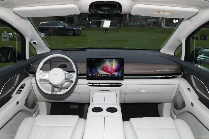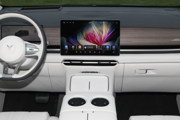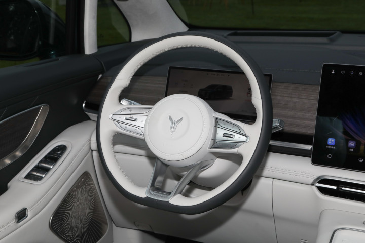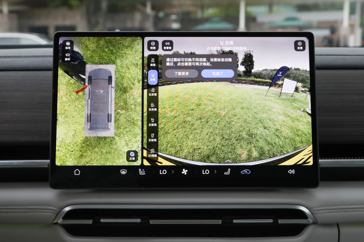 车内座椅用的是云感科技材料,摸上去软软的、很舒服,而且贴合人体曲线,坐上去感觉包裹性很好。前排的领航座椅、二排的 AI 零重力按摩舱以及三排可调节的舒适座椅,都带有加热、通风和按摩功能。上次我开长途,大概两个小时后觉得有点累,就打开了座椅按摩功能,一边看着窗外的风景,一边享受着按摩,没过一会儿,身上的疲惫感就减轻了不少。
