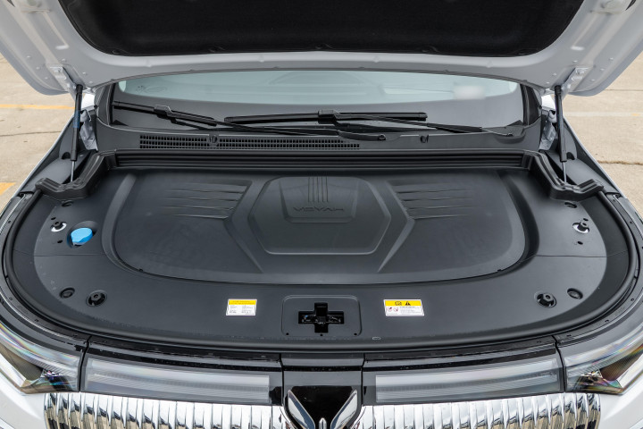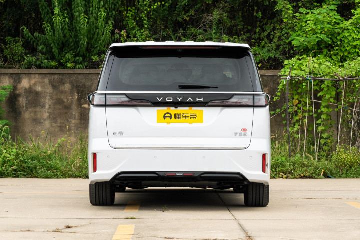 车身尾部同样是方正的造型,只是在细节上做了一些调整。“VOYAH” 标识支持点亮,点亮后会呈现出蓝光,这个蓝光同时也是辅助驾驶的 “小蓝灯”,设计得很巧妙,既美观又实用。车尾的大尺寸扰流板、点阵光源熏黑尾灯,在夜晚点亮后辨识度很高,内凹的牌照框和点阵饰板则让尾部的层次感更丰富,看起来不会单调。